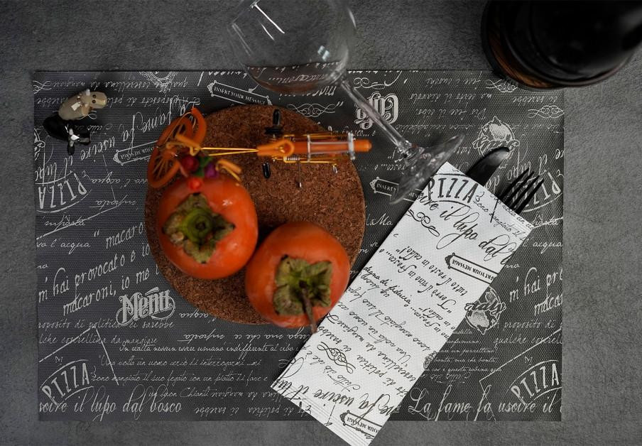 - fehér alapon fekete és ezüst olasz éttermi feliratokkal