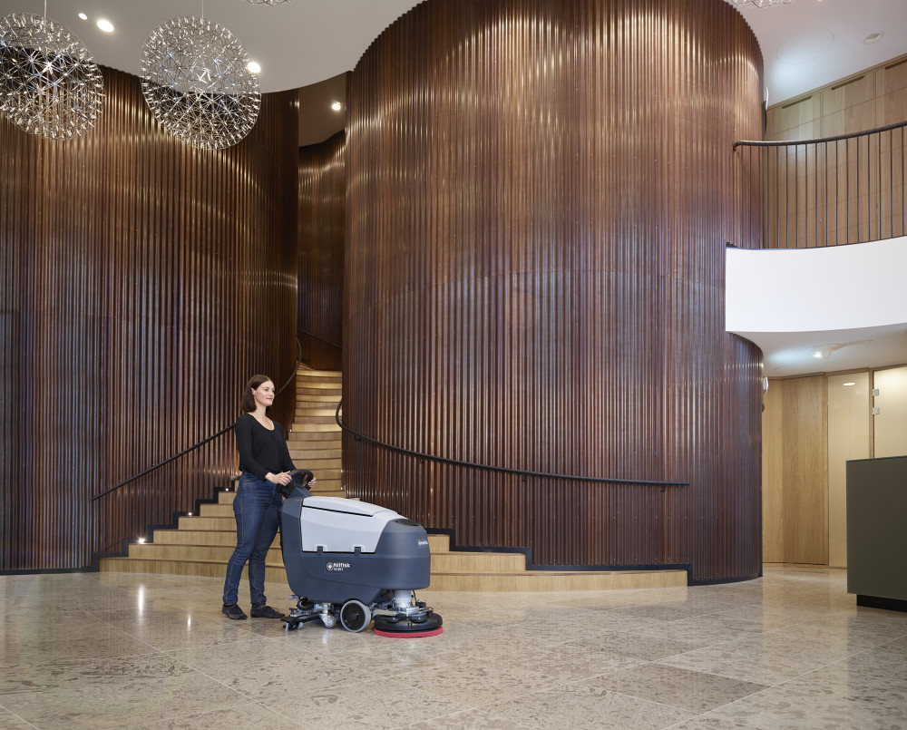 A kompakt és rendkívül könnyen irányítható SC401 gyalogkíséretű padlótisztító mindent biztosít, mint sebesség, pontosság és könnyű használat, amelyre a padló hatékonyabb tisztításához szükségünk van. A nagy teljesítményű gép rendkívül alacsony zajszinttel működik, így tökéletesen alkalmas nappali tisztítás esetén - még zajérzékeny területeken is.