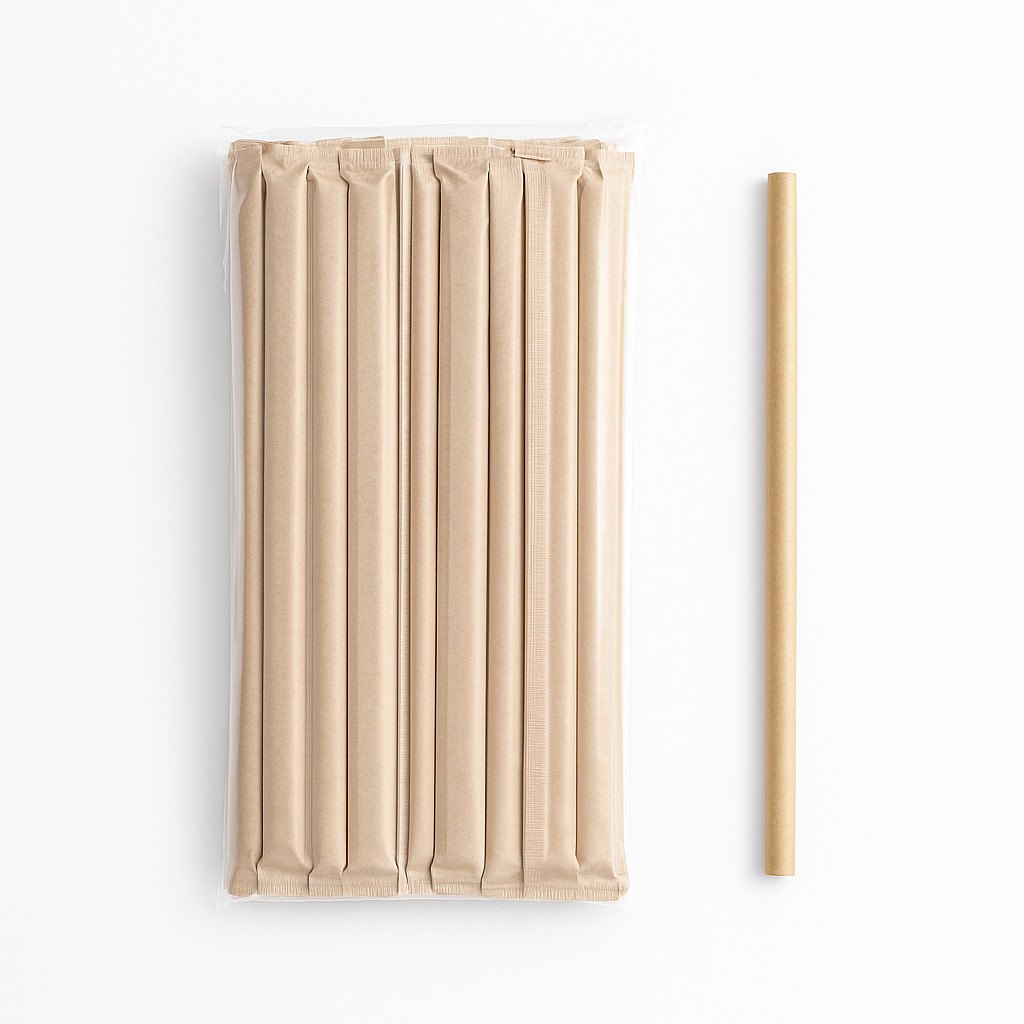 Papír KRAFT szívószál, külön csomagolt, 8×210 mm, 500 db/csomag