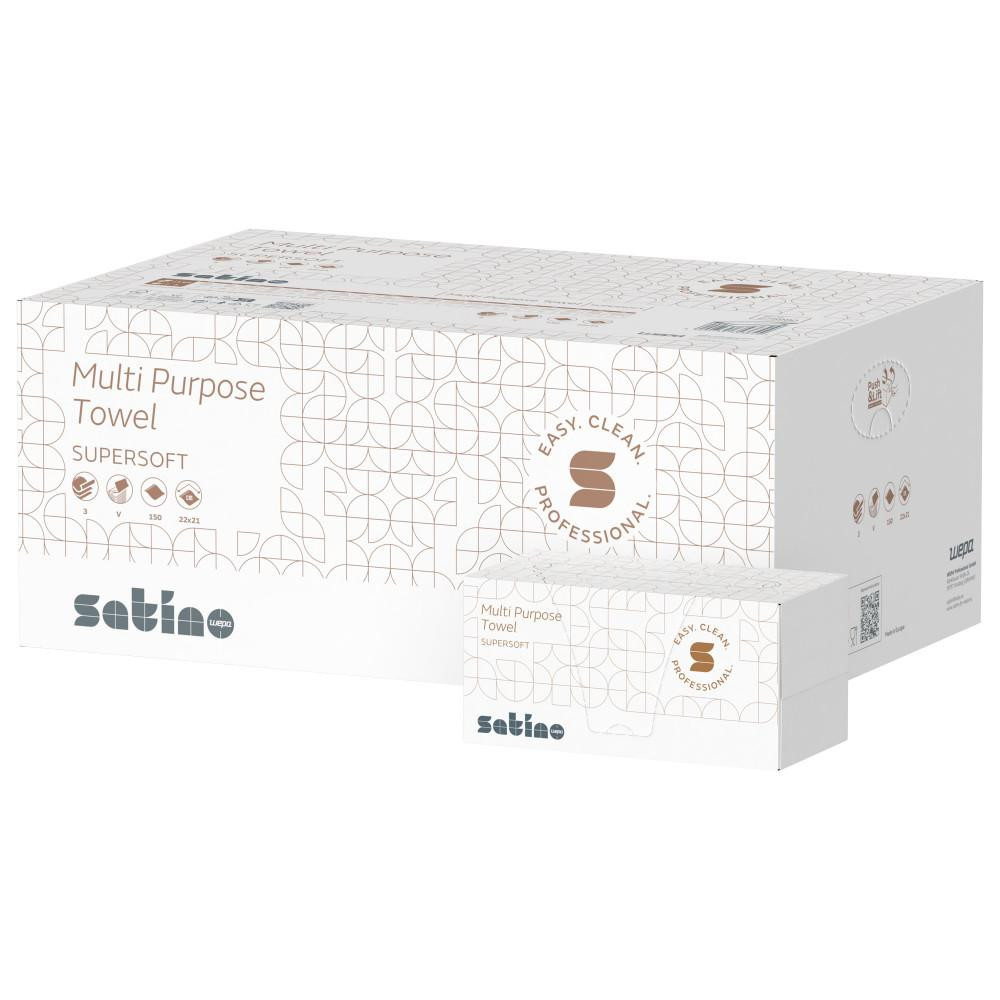 Satino Wepa Supersoft többcélű V hajtogatott törlőkendő 2 réteg, fehér, 22x21cm, 15x200 lap/karton