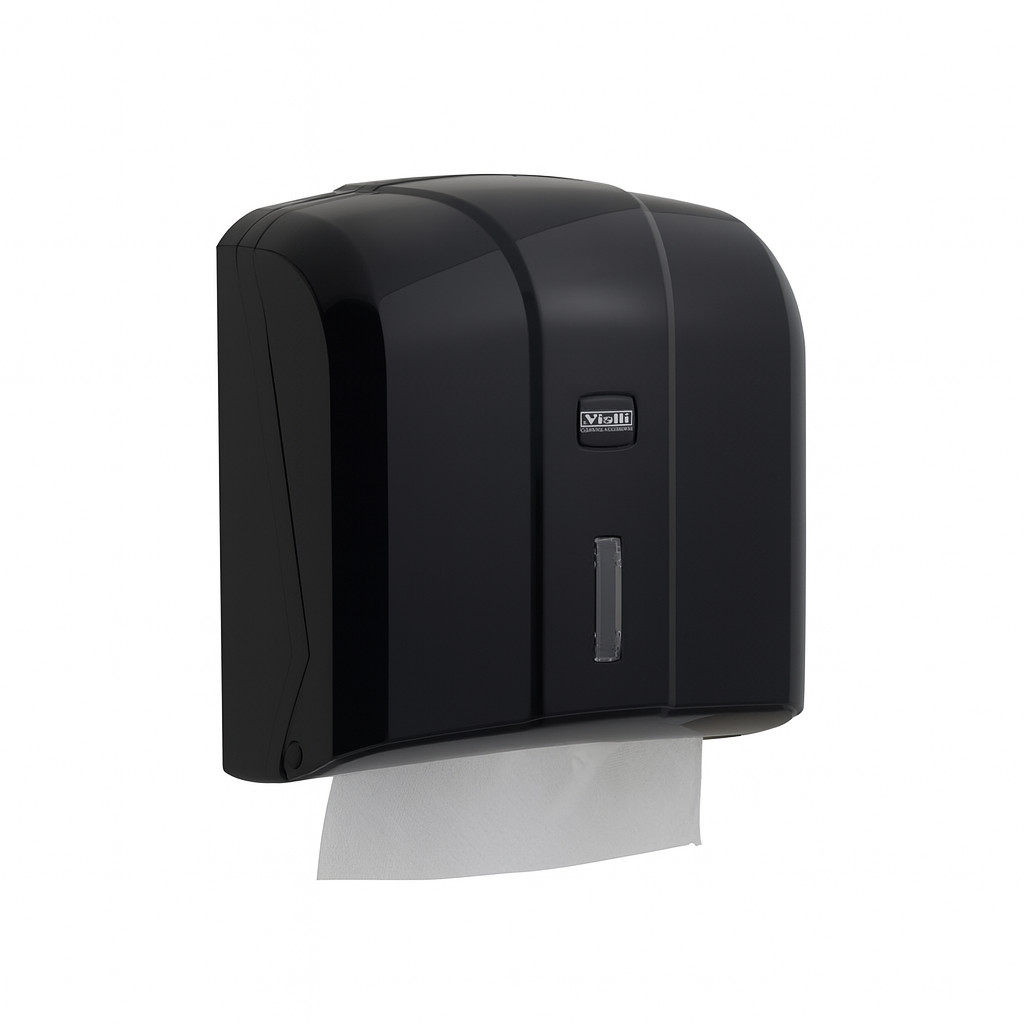 A Vialli K4 adagoló fekete változata. A fényes fekete szín ennek az olcsóbb árfekvésű adagolónak is exkluzív megjelenést kölcsönöz. C és V hajtogatott papír kéztörlőkkel kompatiblis. Kiváló választás azoknak akik kisebb költségvetésből egy meglepően jó megjelenésű mosdó helyiséget akarnak kialakítani. Vendéglátóhelyek és intézmények részére egyaránt ajánljuk. Kullccsal zárható. Átlagos forgalmú mosdóhelyiségekbe kiváló. A V hajtogatott papír kéztörlővel használata gazdaságos és higiénikus.